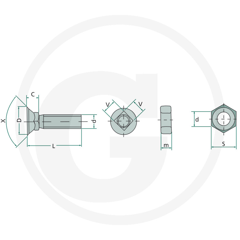Adrapolt+mutter M12x60 10.9 (nelikant, 24mm)