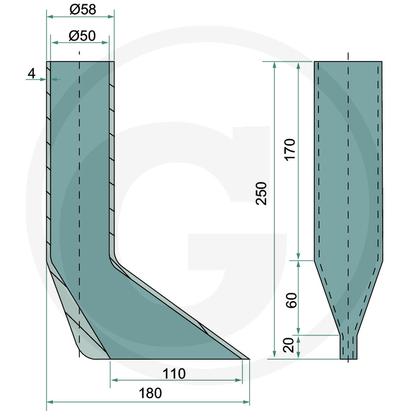 Vaonoa lägalutt Ø50/58mm L-250mm Bomech 45003